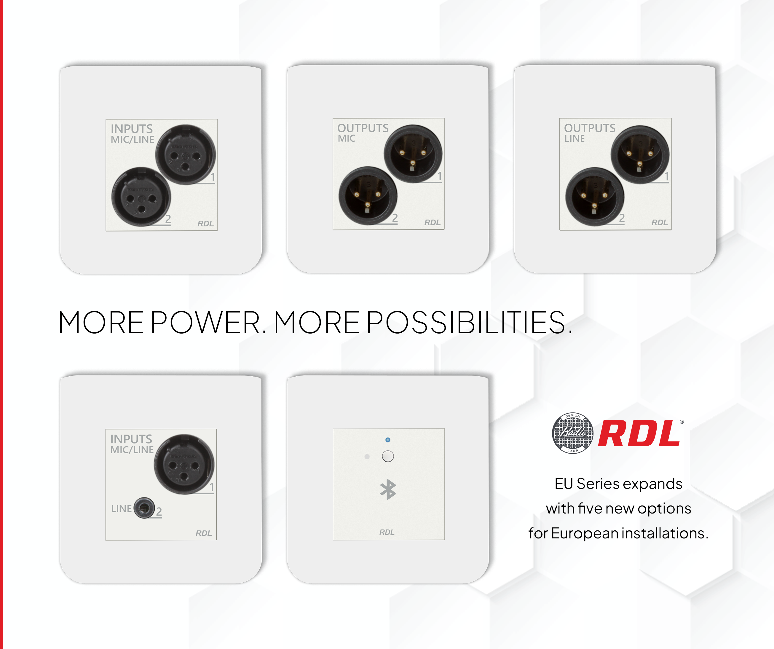 Firma RDL ogłasza rozszerzenie serii EU o pięć nowych urządzeń, zaprojektowanych specjalnie z myślą o wymaganiach europejskich instalacji audio. Nowe modele oferują jeszcze większą elastyczność w zakresie wejść i wyjść audio, obsługę sieci Dante® oraz AES67, a także kompaktową, ścienną formę idealną do zastosowań instalacyjnych. Wśród nowości znalazły się interfejsy mikrofonowe, liniowe oraz hybrydowe, a także rozwiązania z łącznością Bluetooth®, umożliwiające łatwą integrację lokalnych źródeł audio z sieciowymi systemami nagłośnieniowymi.